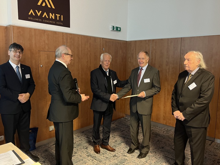Předseda České slévárenské společnosti Ing. Ludvík Martínek, Ph.D., přebírá Cenu profesora Zdeňka Bůžka