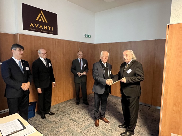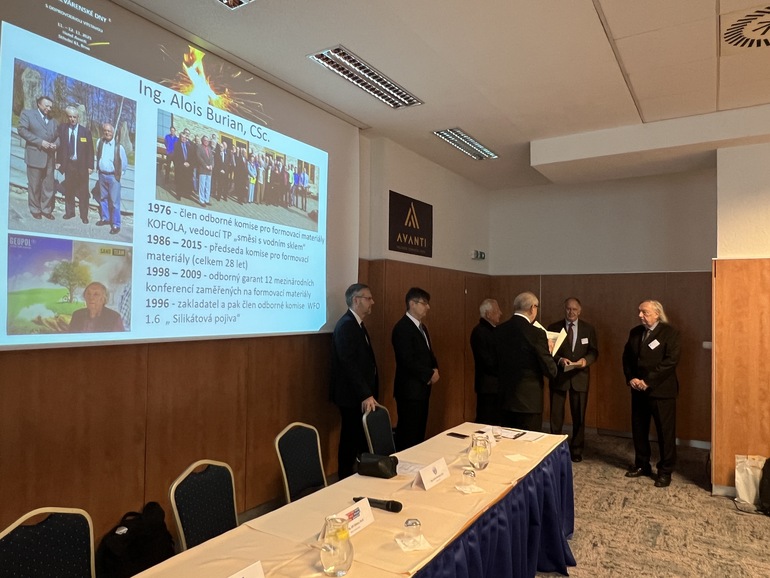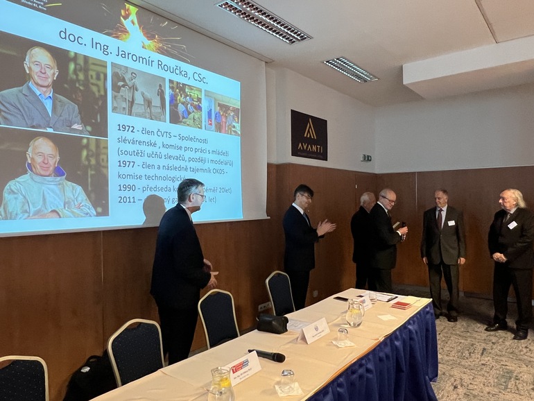 Předseda České slévárenské společnosti Ing. Ludvík Martínek, Ph.D., přebírá Cenu profesora Zdeňka Bůžka